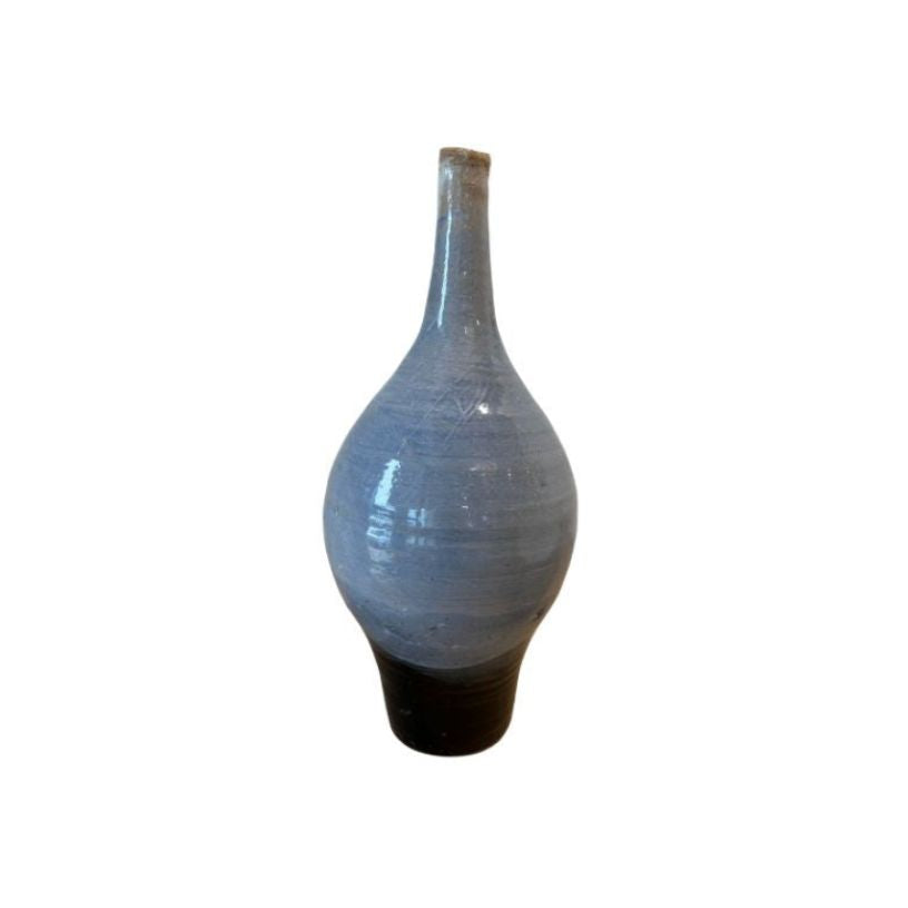 Ceramic deep blue vase with white interior Dimensions: 10 1/2" H x 11" Dia