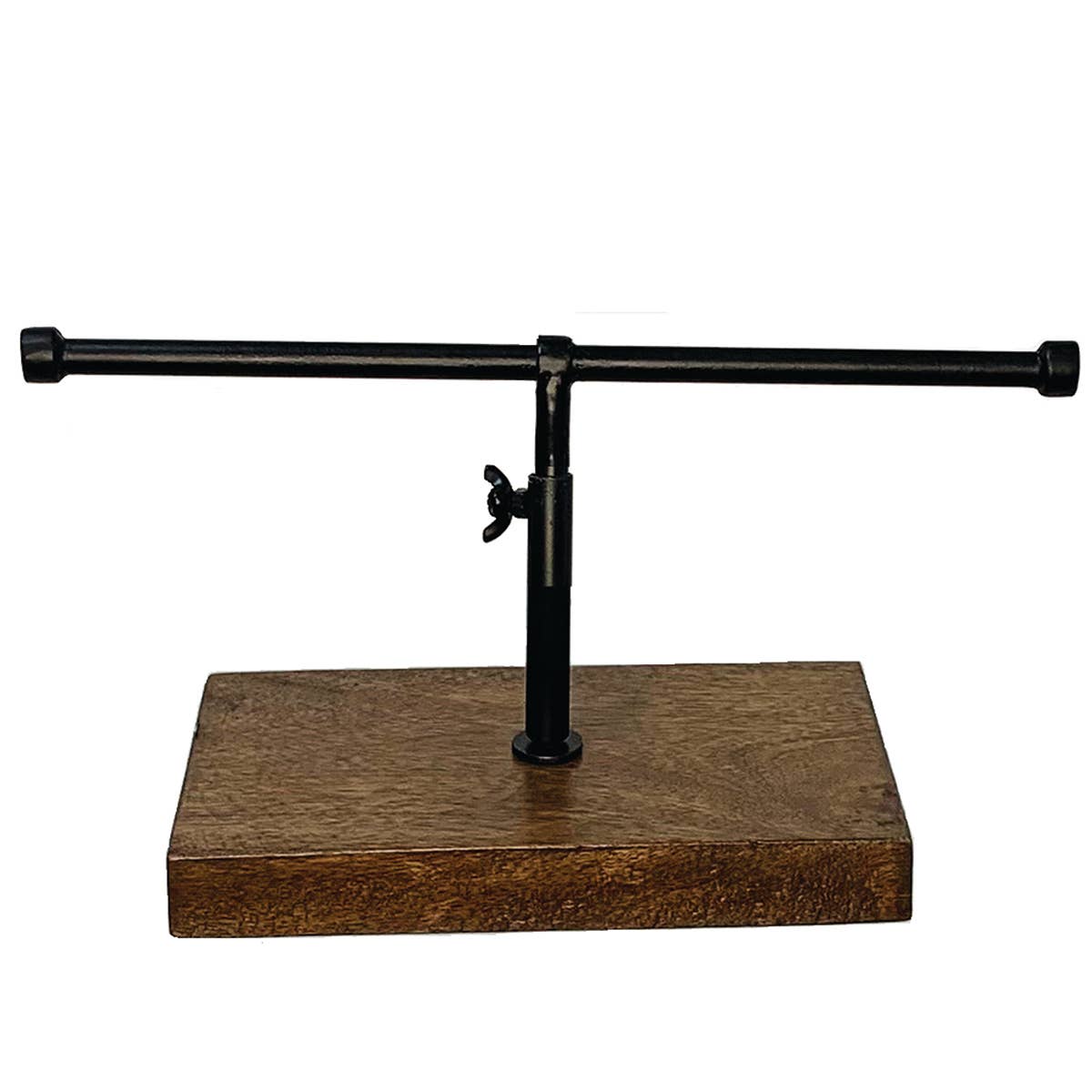 Metal adjustable bar in brown wooden base. Adjustable height T-Bar display for bracelets. Unit dimensions...