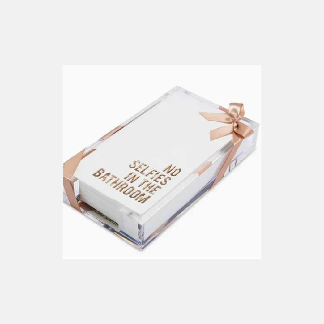 Acrylic Tray with Guest Towels- No Selfies in the Bathroom