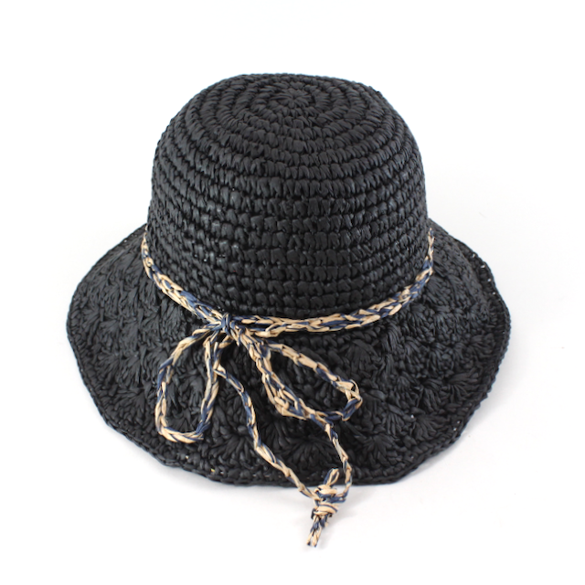 Handmade Faux-Raffia Crochet Hat w/Bow Design