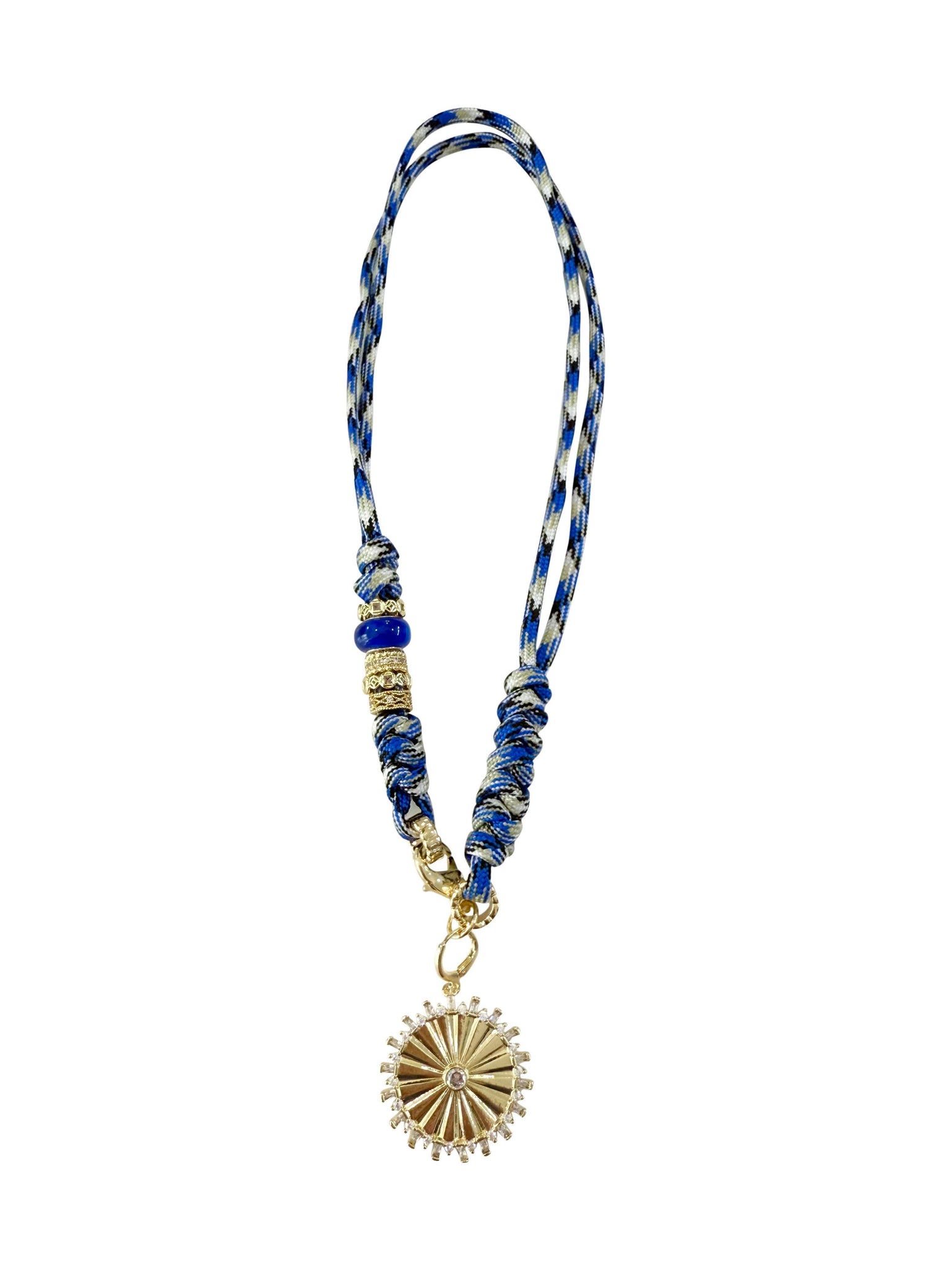 Johnny Light Blue Rope Necklace with Large CZ Coin Charm