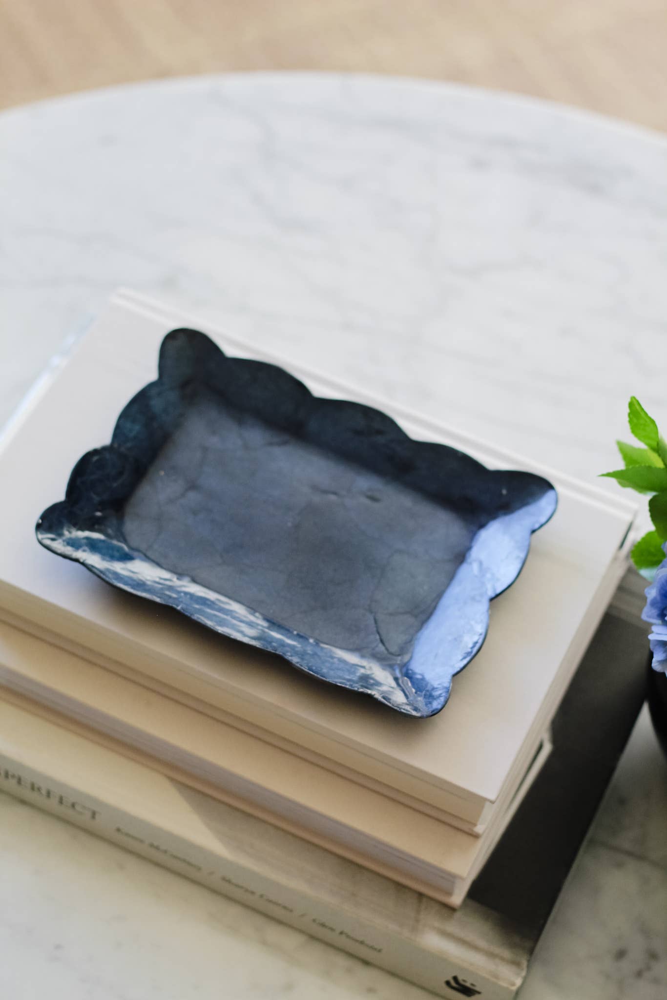 Capiz Mini Rectangular Tray w/Scalloped Edge (Blue)