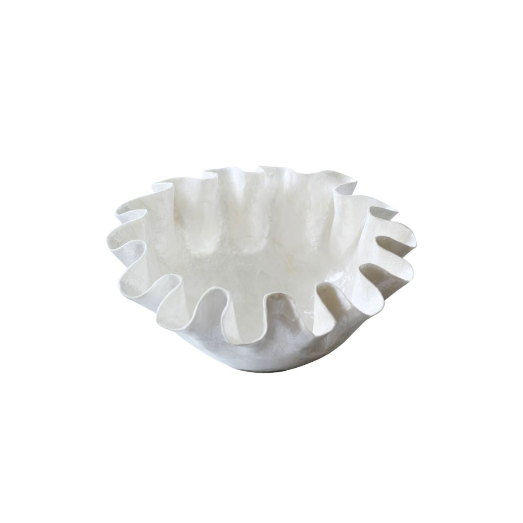Capiz Ruffle Centerpiece Bowl Natural White 12" diameter 6" height Made of Laminated Capiz Shell...