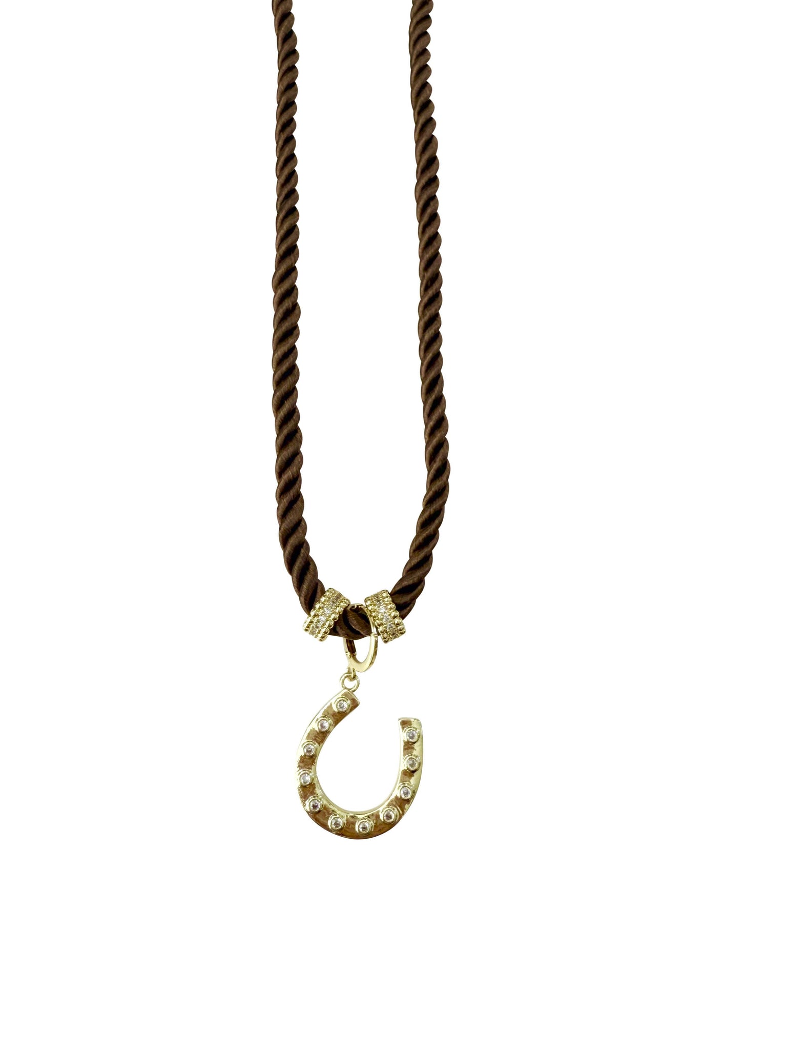 Bold yet charming, the Dakota necklace features a brown rope design accented with a radiant...