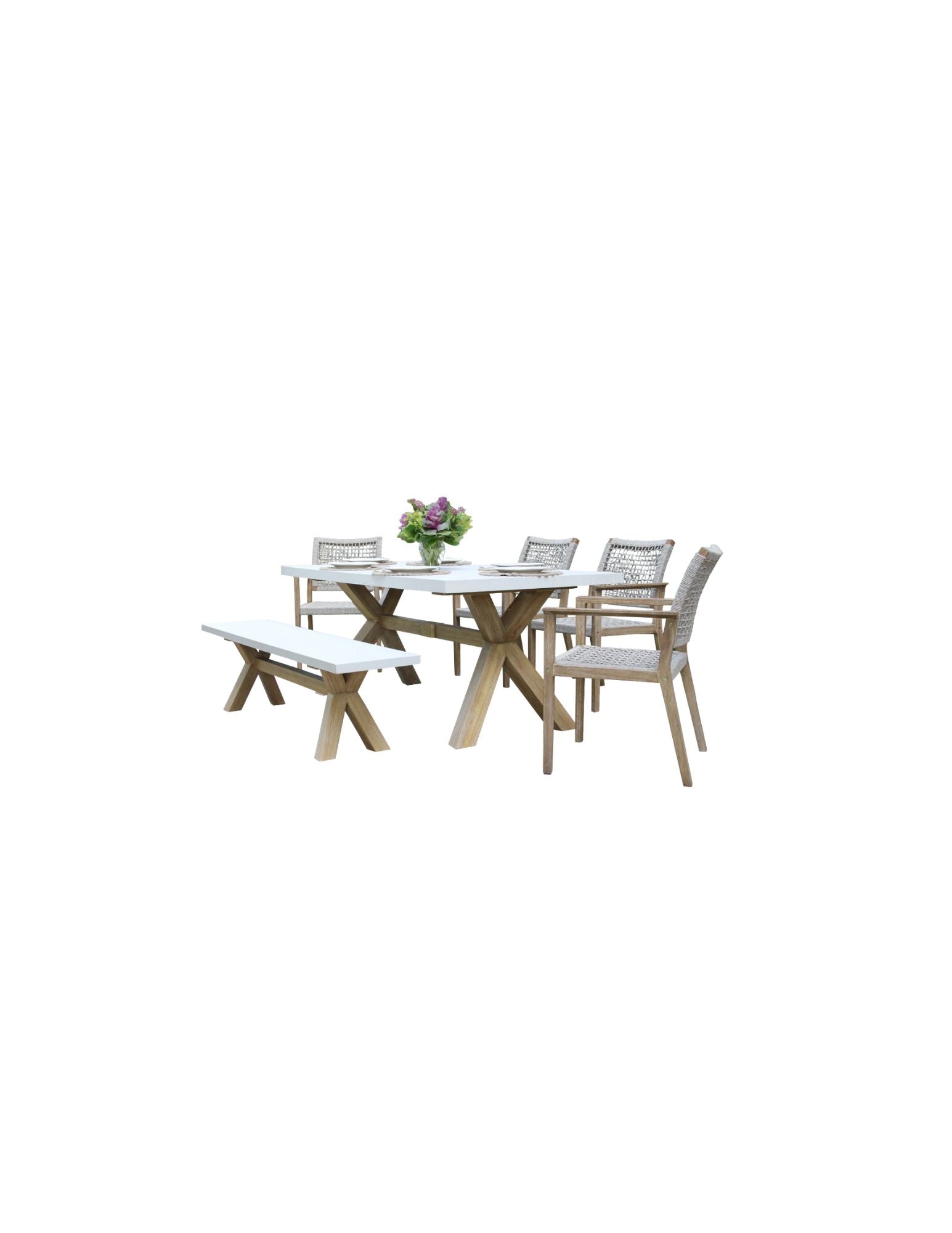 6-Piece Ivory Composite and Eucalyptus Wash Dining Set With Bench