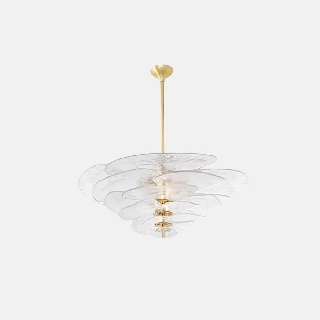 The chandelier features beautiful colorized glass leaves inspired by nature, creating a striking visual impact...
