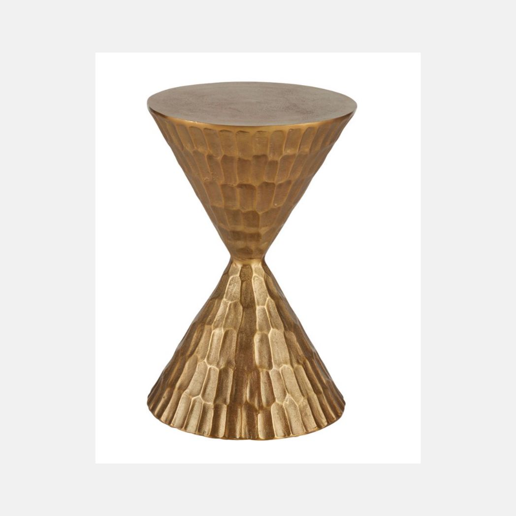 Our cast aluminum accent table is dynamically tapered and finished with a hammered, feathered texture...