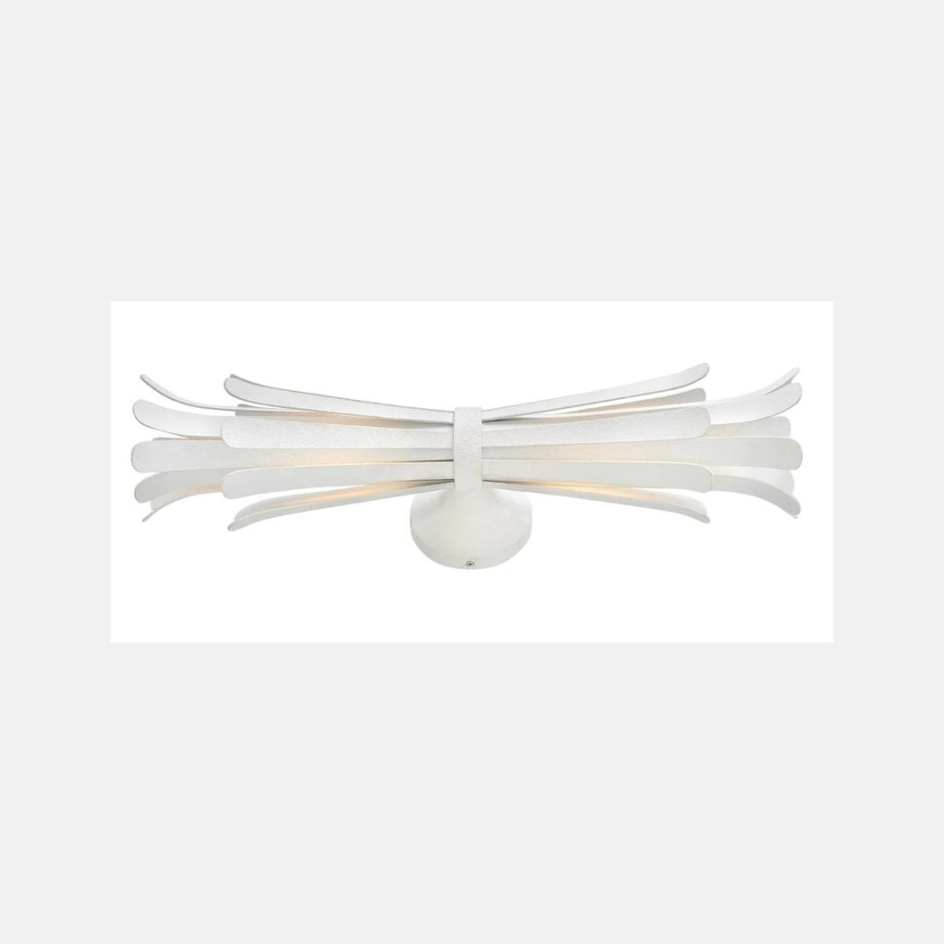 Remarkably dramatic, Reinas repeating flared fronds surround its central drum and etched white glass diffuser,...