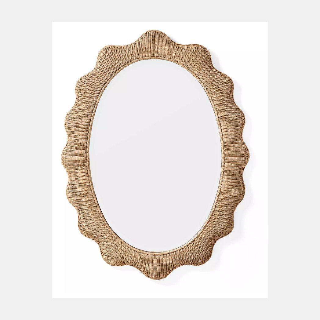 Shapely. An oval mirror, framed in rolling waves. Rattan's quintessential wicker weave. 6"W x 48"H...