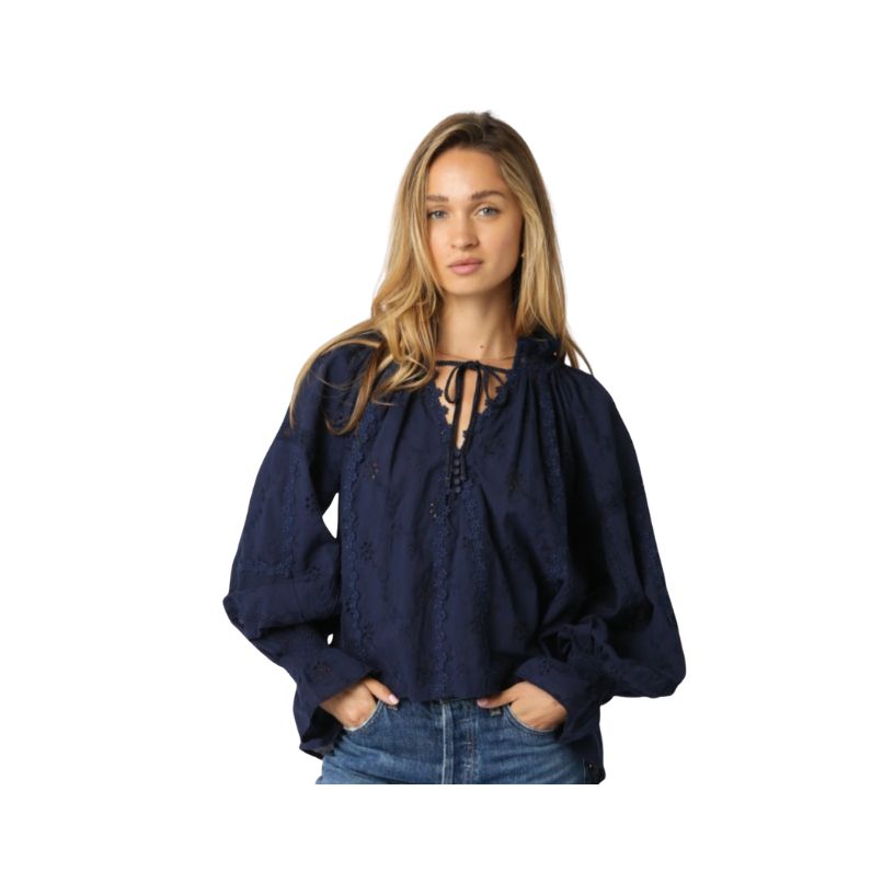 Effortlessly chic and beautifully detailed, the Navy Laced Hem Shirt features long sleeves and a...