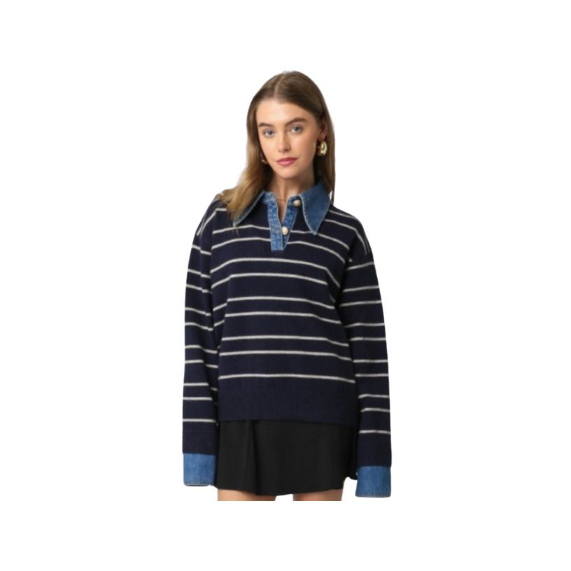 The Coastal Stripe Mock Neck Sweater blends timeless nautical charm with effortless comfort. Featuring bold...