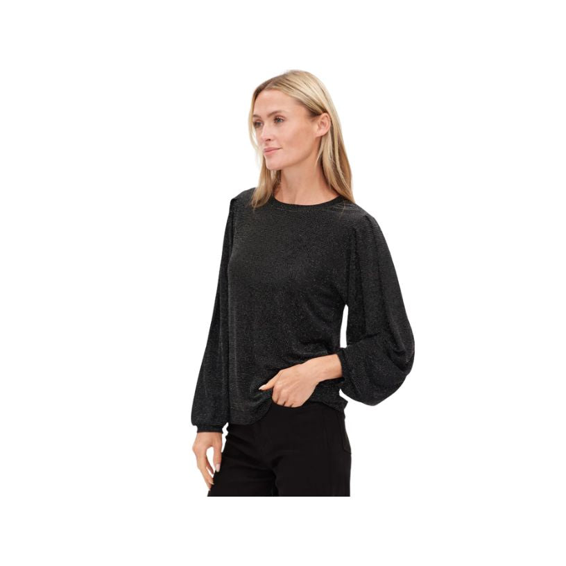 Elevate your style with this Metallic Blouson Sleeve Top, featuring delicate lurex threads that shimmer...