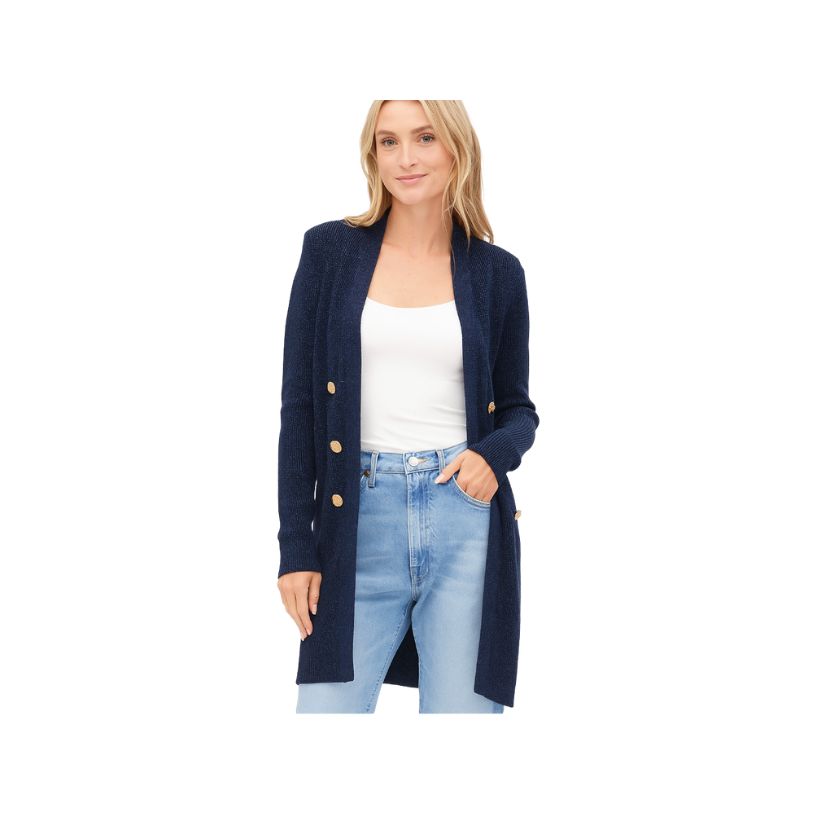Elevate your everyday look with this Navy Lurex Gold Button Cardigan, a refined blend of...