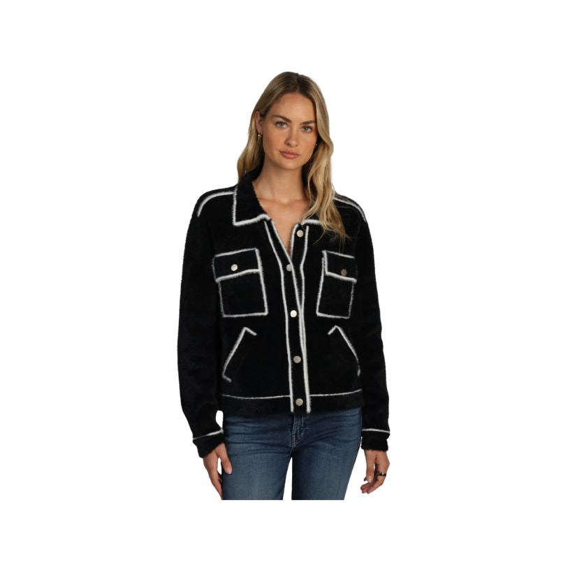 Wrap yourself in cozy sophistication with our Plush Black Contrast Trim Jacket. Crafted from ultra-soft...