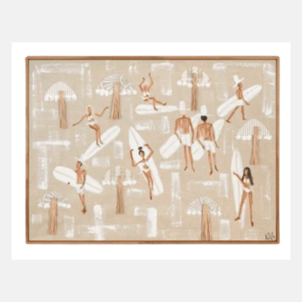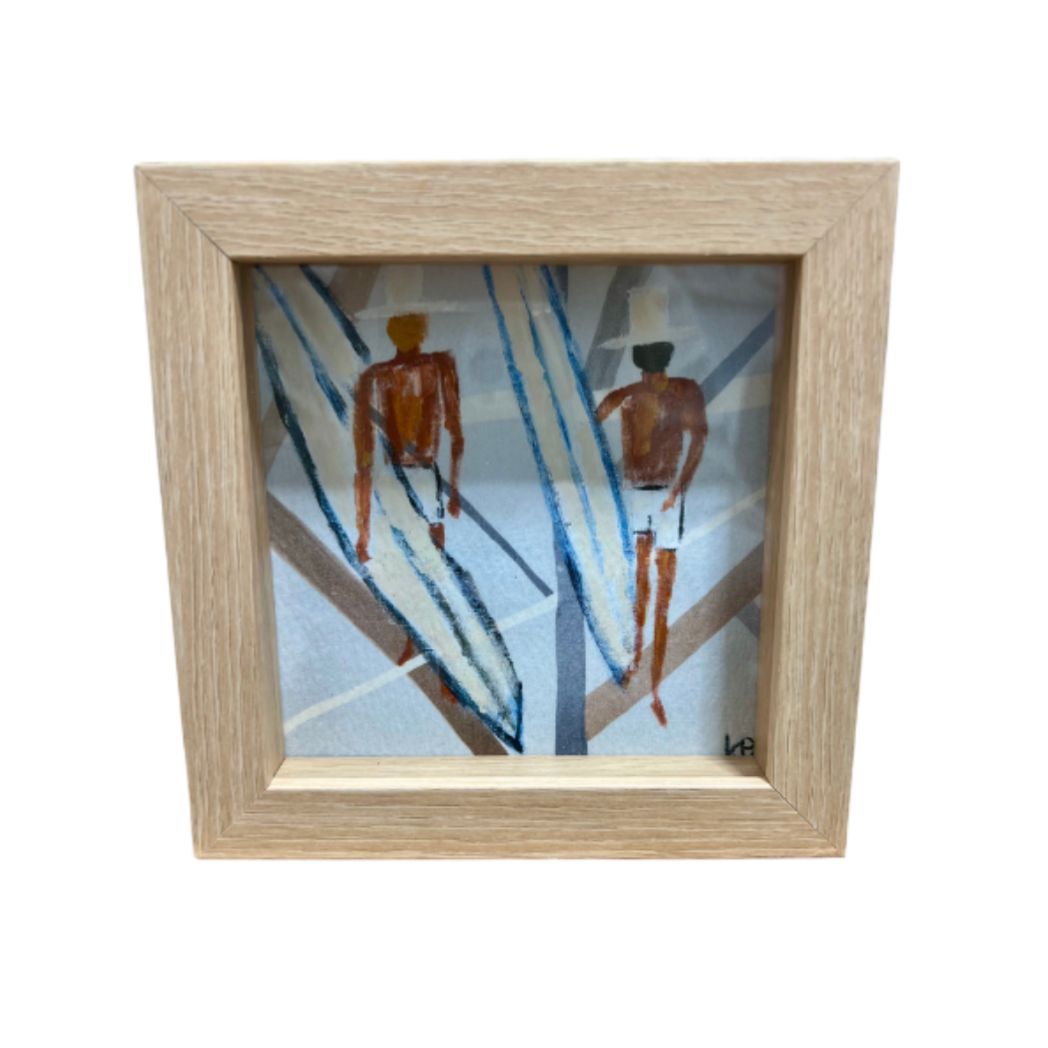 Mini Surfers framed Kathleen Palmeri Art Framed in natural wood 6x6