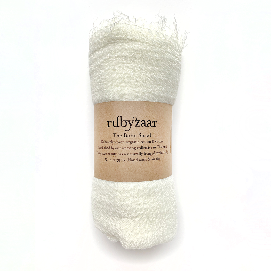 Delicately woven cotton & viscose shawl. Hand dyed by our weaving collective in Thailand. This...