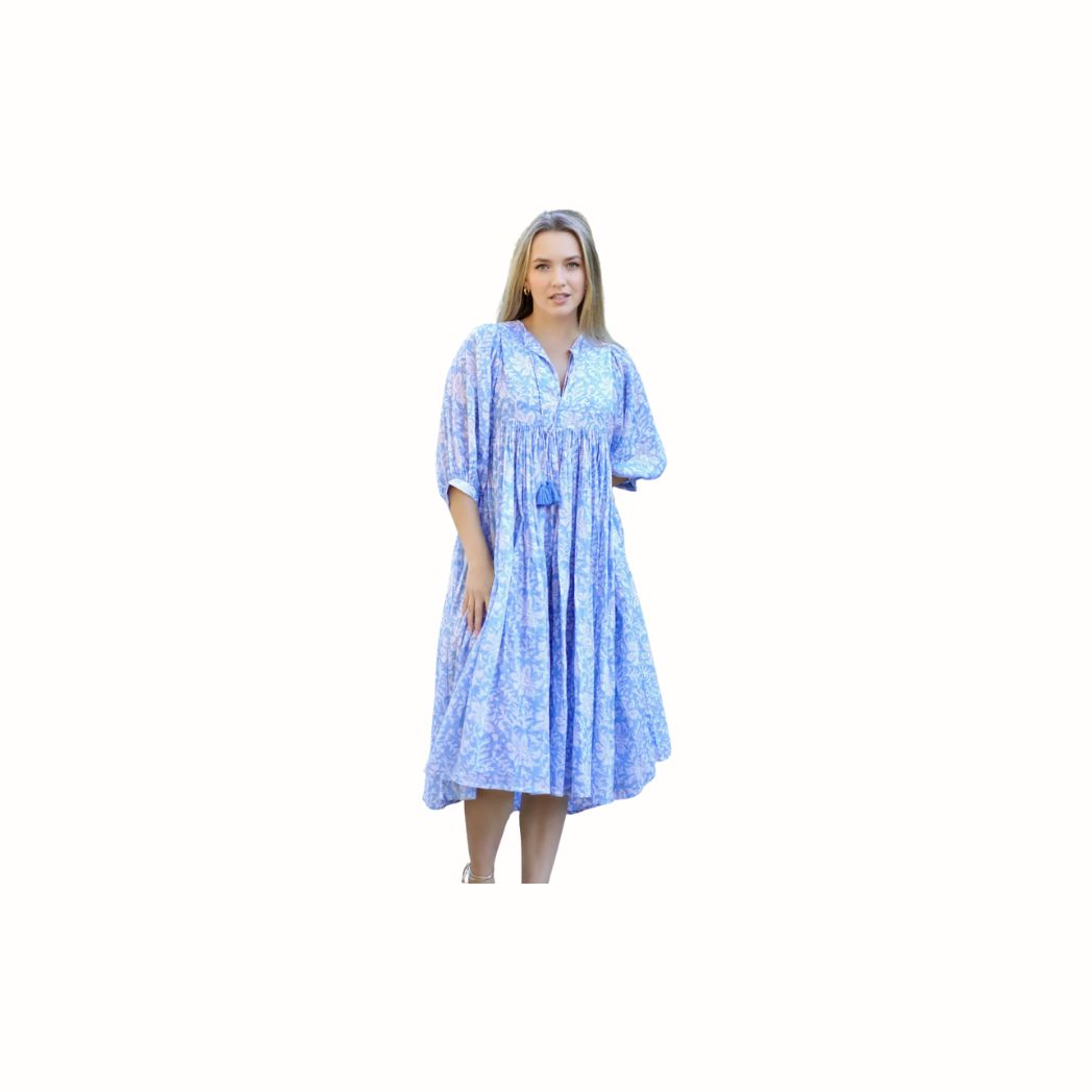 A flowy, soft cotton dress using the ancient Indian technique of hand block printing; A...