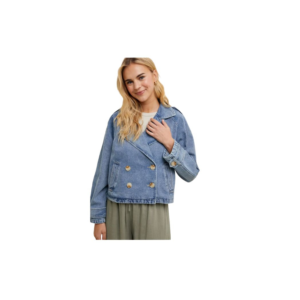 DOUBLE BREASTED DENIM JACKET - FUNCTIONAL BUTTONS AND POCKETS, RELAXED, COMFORTABLE, CASUAL 100% COTTON *...