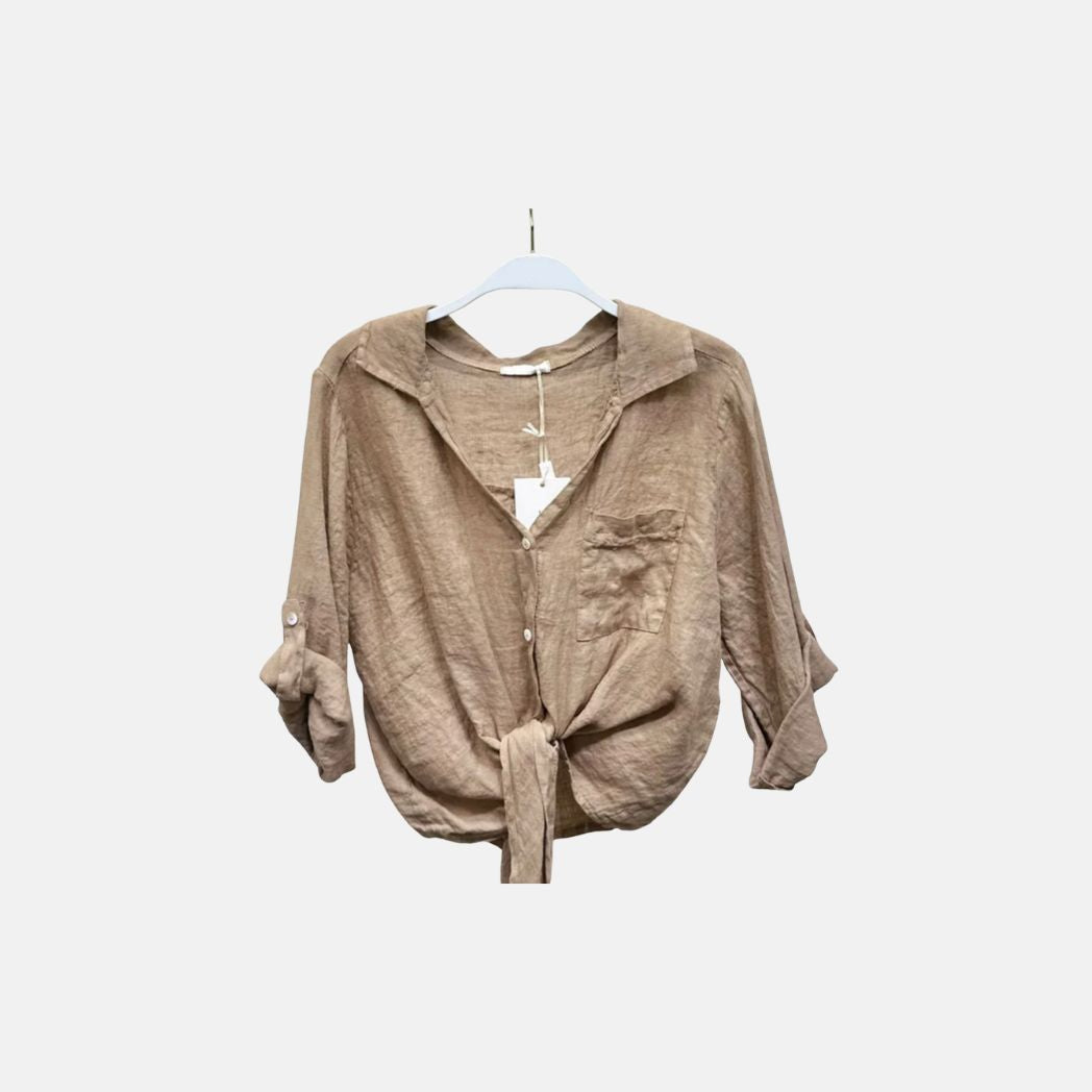 Introducing our Linen Front Tie Button Shirt, expertly crafted from 100% linen in Italy. This...