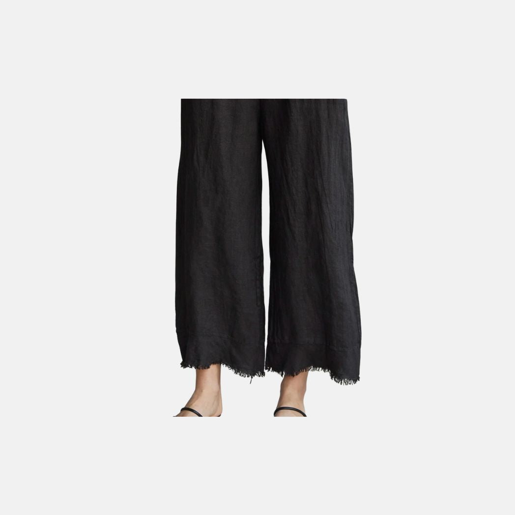 ITALIAN LINEN FRINGED HEM WIDE LEG LOOSE FIT PANTS 100% LINEN BREATHABLE NATURAL LINEN FABRIC...