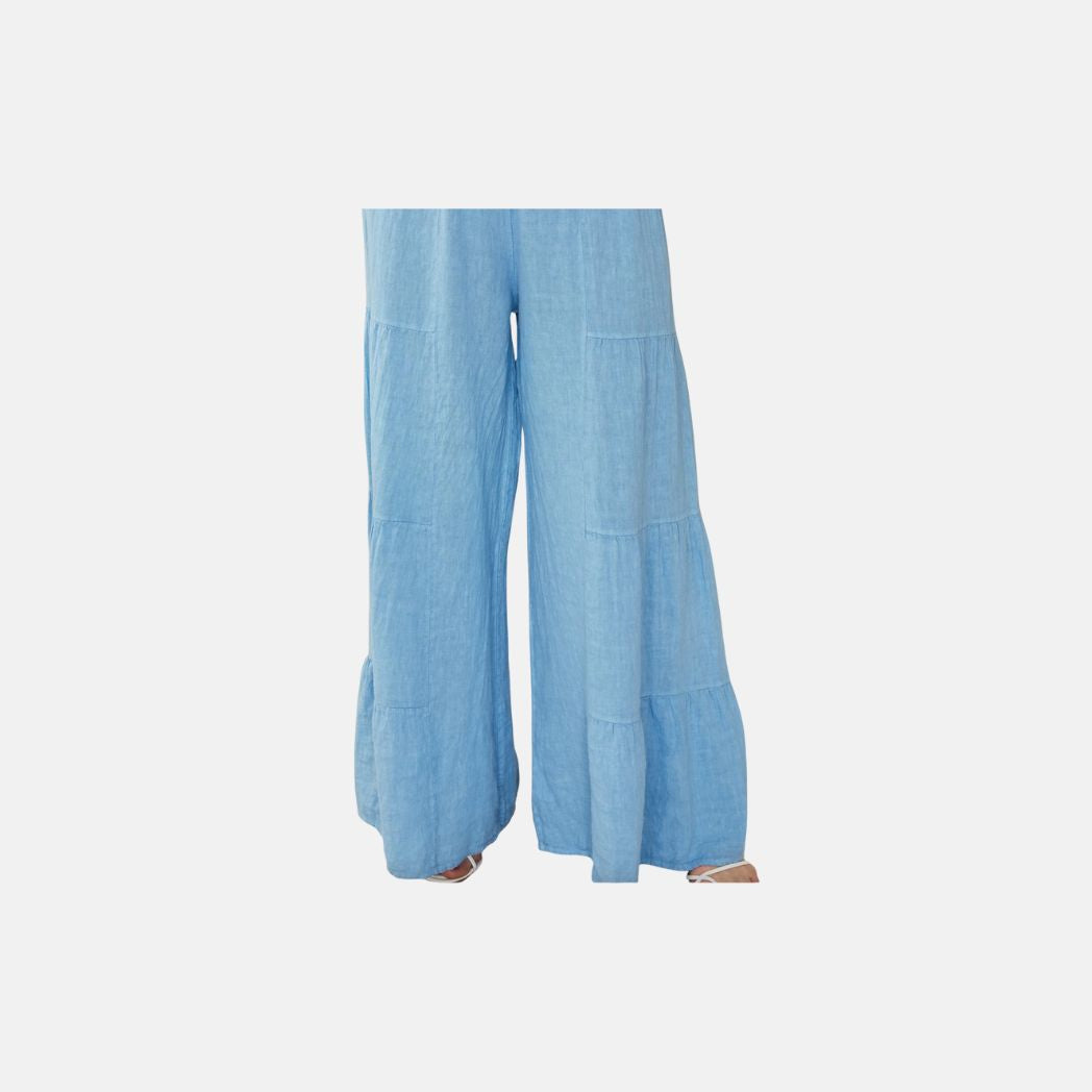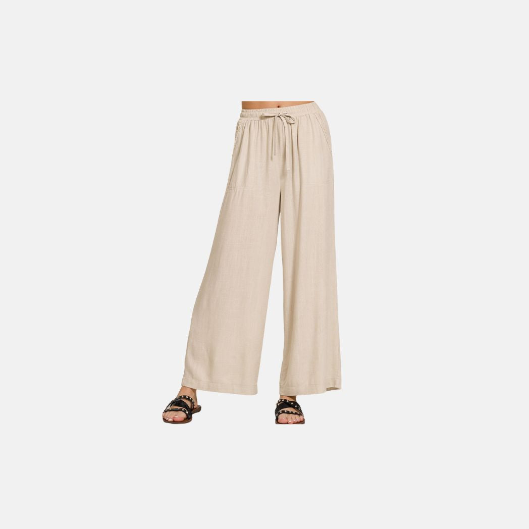 WIDE-LEG LINEN BLEND PANTS WITH POCKETS - DRAWSTING WAISTBAND- TWO FRONT POCKETS- COMFY RELAXED FIT...