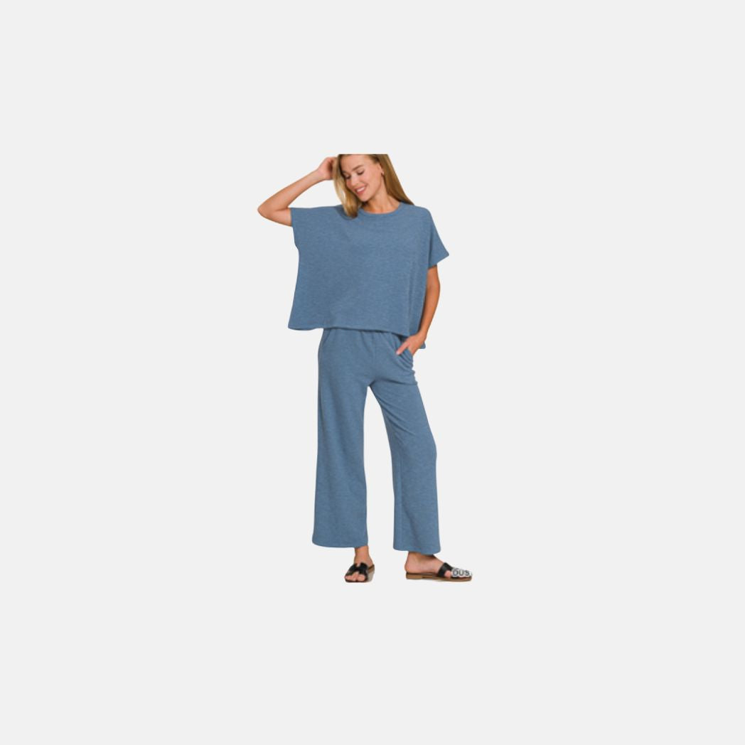 COTTON SLUB TOP & PANTS SET-ELASTIC WAISTBAND & POCKETS * TOPTOTAL BODY LENGTH: 22.25", BUST:...