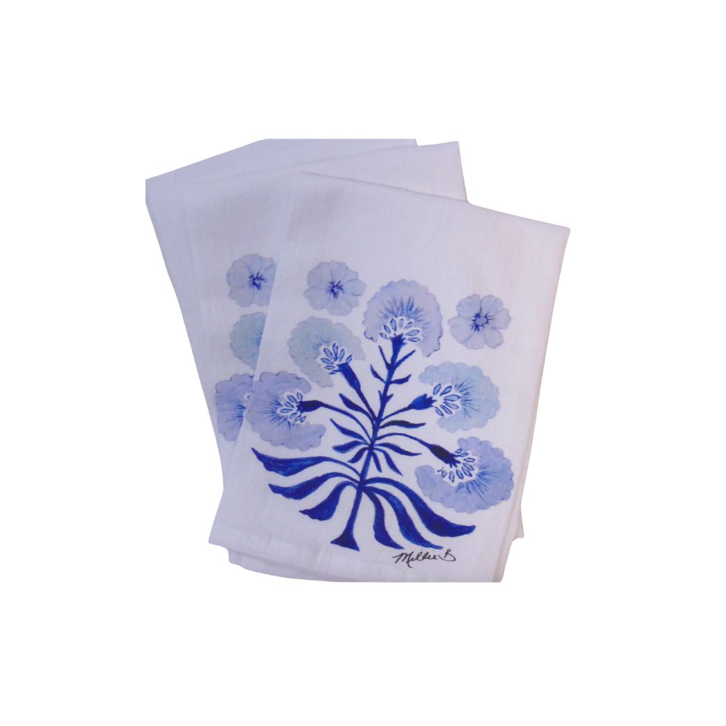 100% cotton. 20x20 Limited edition Watercolor Blue Frond print on white flour sack napkins. Our...