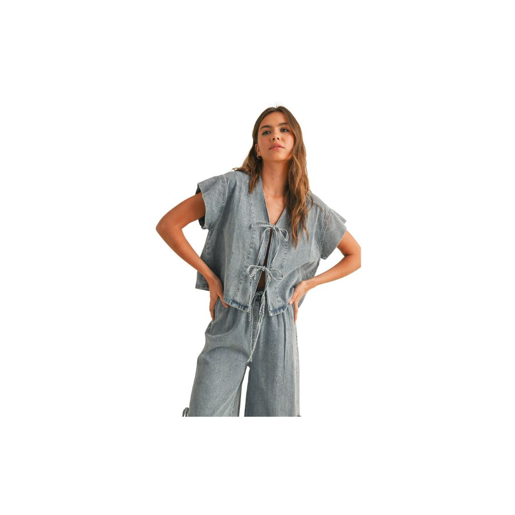 DENIM TIED FRONT BLOUSE