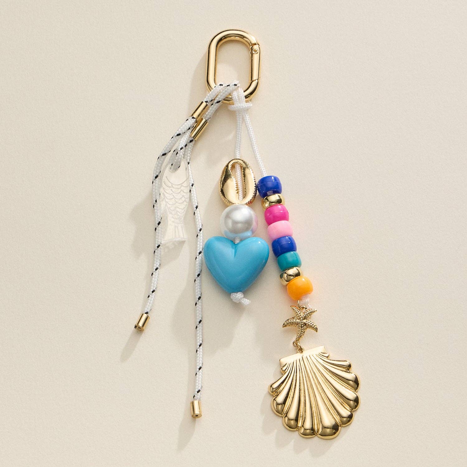 Nautical Beaded Bag Charm with Shell and Heart Accents