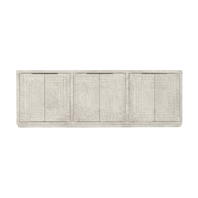 This Reclaimed Pine 6-Door Credenza features weathered cream pine wood with natural variations like knots,...