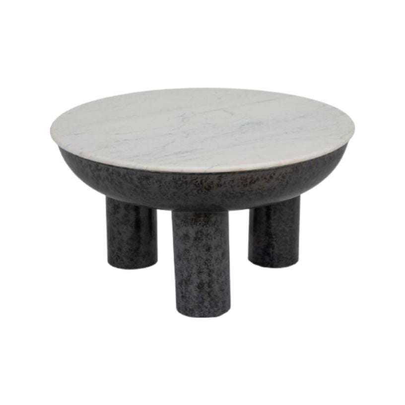 Make a bold statement with this sculptural coffee table, featuring a solid chunky-leg black base...