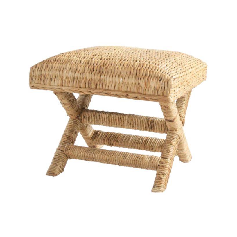 Elevate your space with this beautifully woven water hyacinth and wood stool—a natural, textural accent...