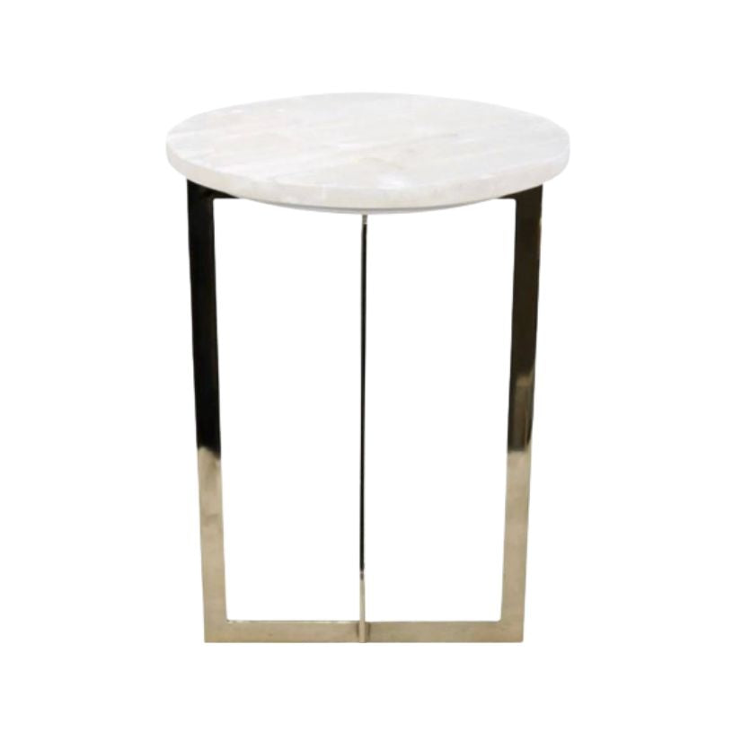 Elevate any room with this luminous selenite accent table, featuring a striking gold metal cross...