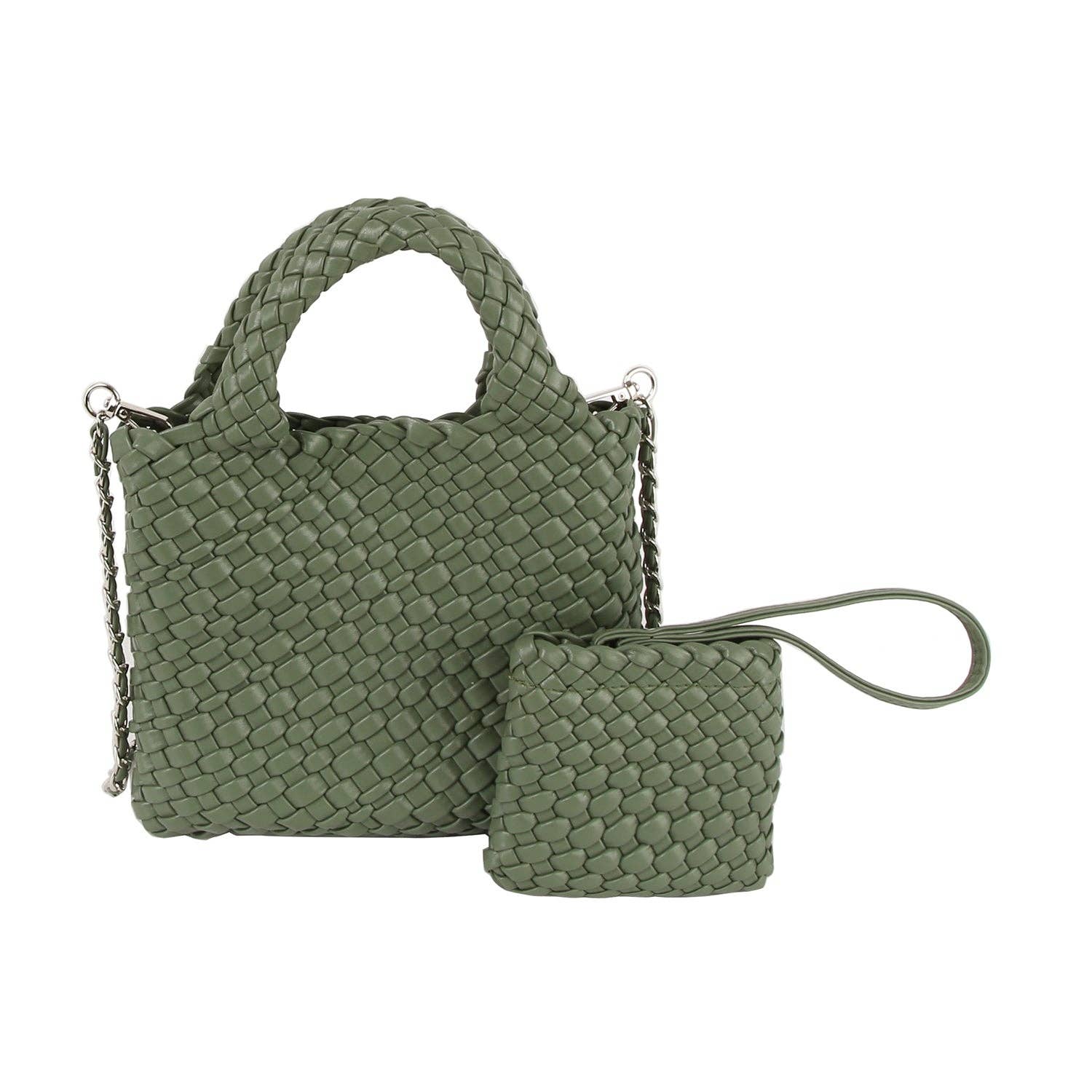Woven Mini Handle Tote with Matching Pouch