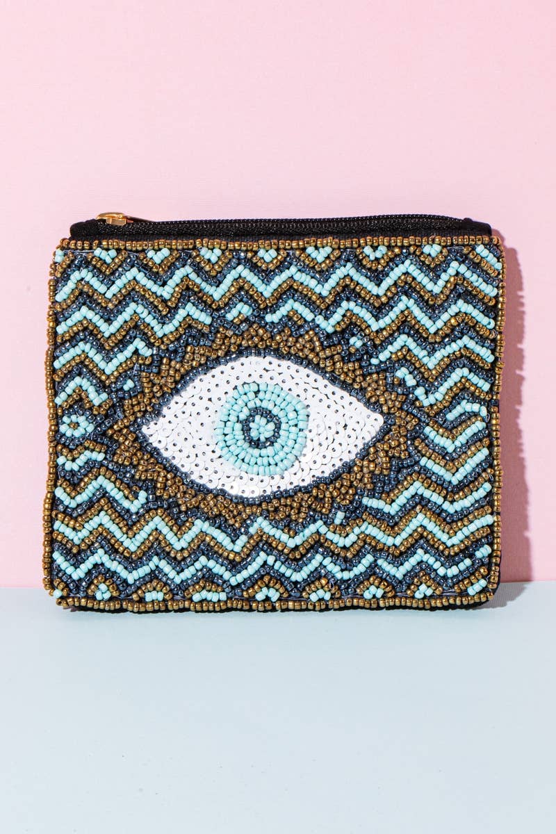 Zigzag Striped Evil Eye Beaded Coin Purse