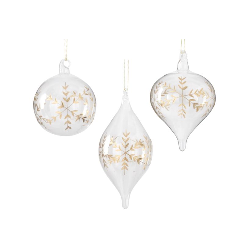 Clear Glass Gold Etched Snowflake Ornament – 3 Styles