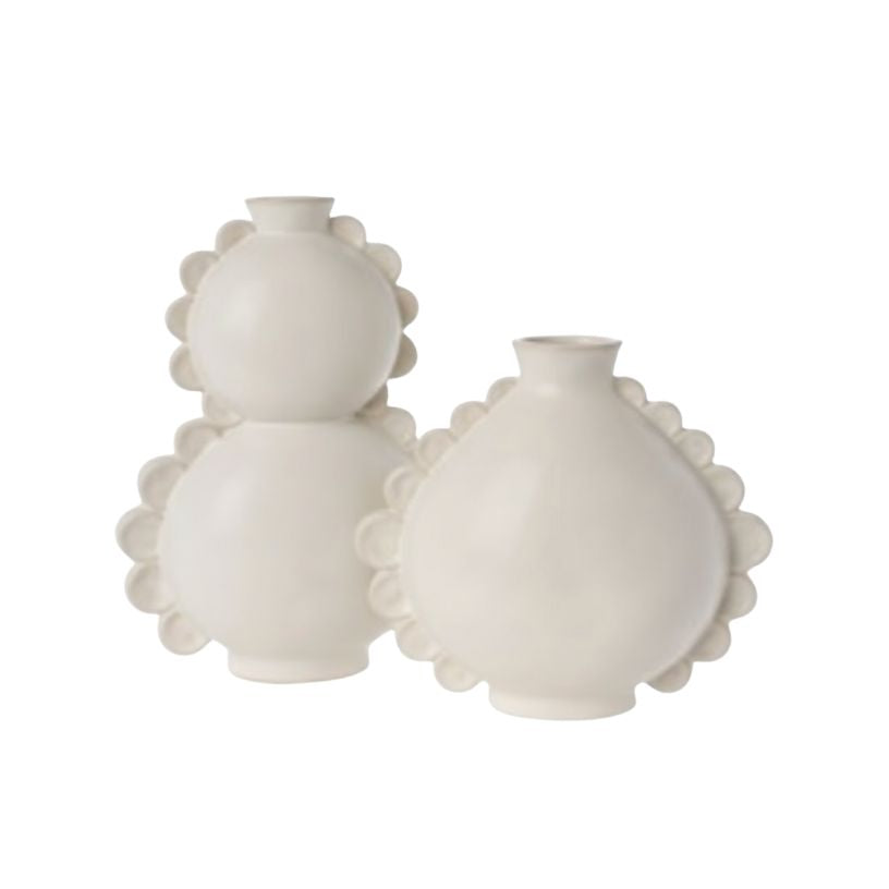 Off White Side Ribbed Vase Set of 2