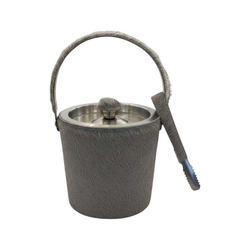 Elevate your entertaining with this chic ice bucket featuring silver and grey hide accents paired...