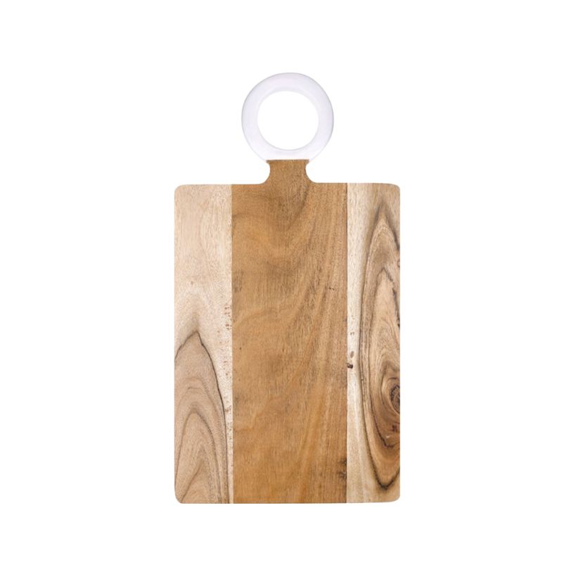 Serve in style with this rustic yet refined acacia wood board, thoughtfully designed with a...