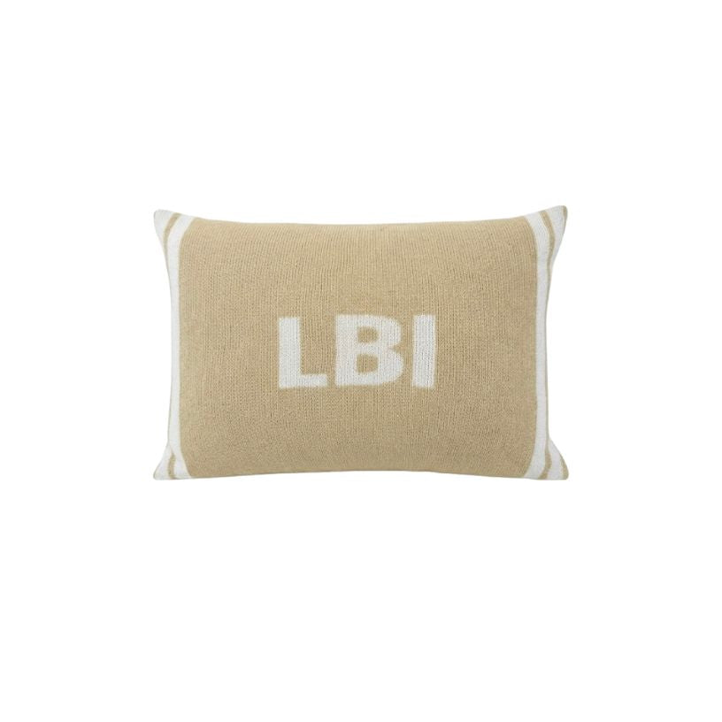 Long Beach Island camel and cream colored 12x18" lumbar pillow. Cotton hand knit.