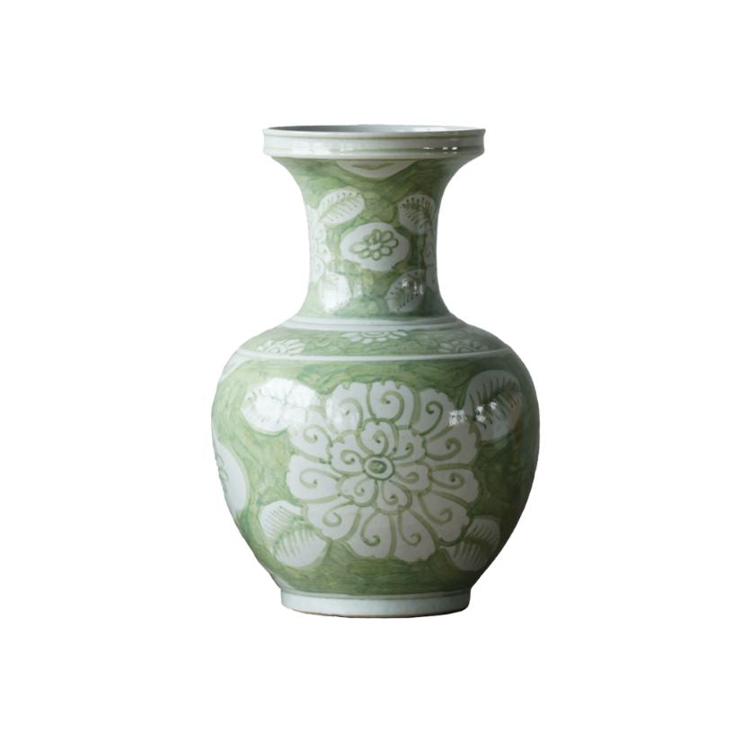 Bring nature indoors with this Jingdezhen Hand-Painted Green Floral Vase. Featuring large leaves and blooms...