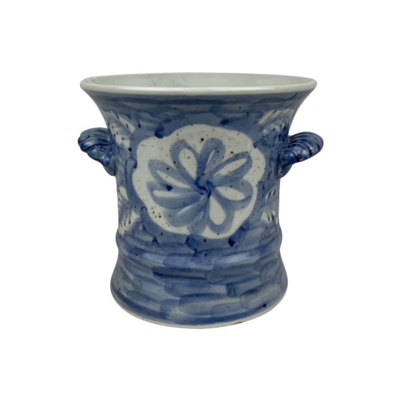 Add a touch of charm with this Jingdezhen Hand-Painted Porcelain Folk Pot. Featuring airy navy brushstrokes...
