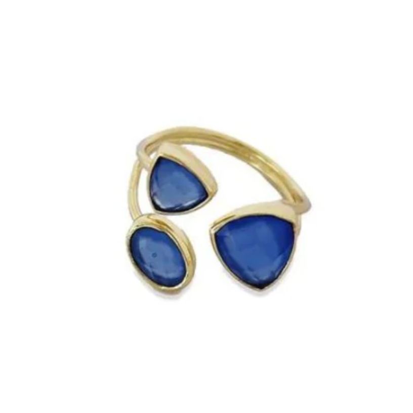 Triple Gold Square Gemstone Ring Available in- Mother of Pearl, Ice Blue, Navy Semi-Precious Stones ...