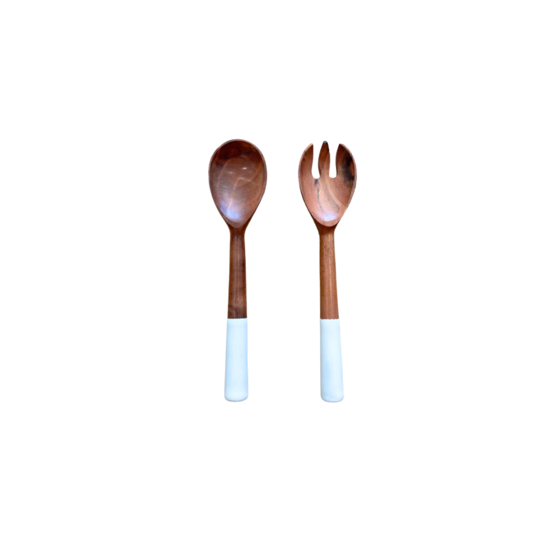 Oval Mango Wood & Enamel Servers