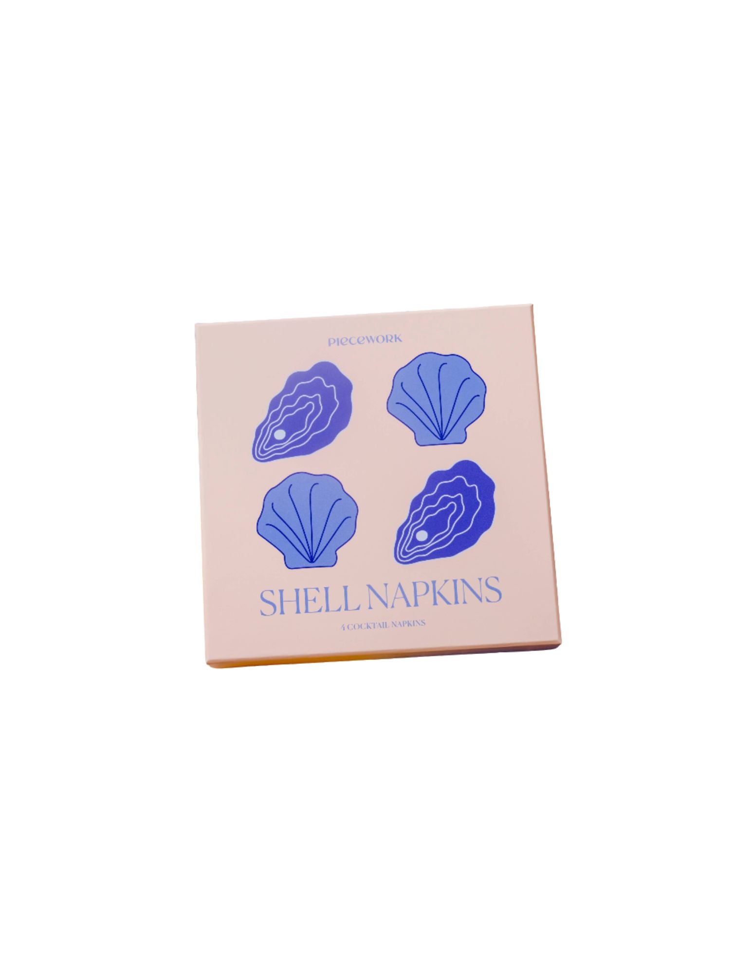 Bring the beach to your bar cart with four 100% linen blue shell-shaped napkins. Sold...